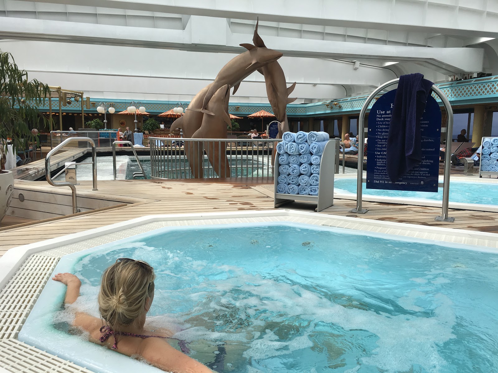 Aber jetzt erstmal aufwärmen unter dem Glasdach beim Pool und in der Sauna und Schlaf nachholen.