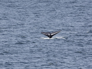 Man muss dazu sagen, dass Wale kleine Spielverderber sind, man sieht sie ausatmen, sie bleiben aber meist nur direkt an und unter der Wasseroberfläche. Ich lerne Frank aus Hamburg kennen. Wir zwei sind gleich ein gutes Team, er hat ne super Kamera und ich habe ein Talent die Wale aufzuspüren. Es kostet uns einige Zeit, bis sie uns den Gefallen tun, sich mal zu zeigen. Einer hat aber Spaß daran, immer wieder hochzuspringen und abzutauchen. Yippie!
