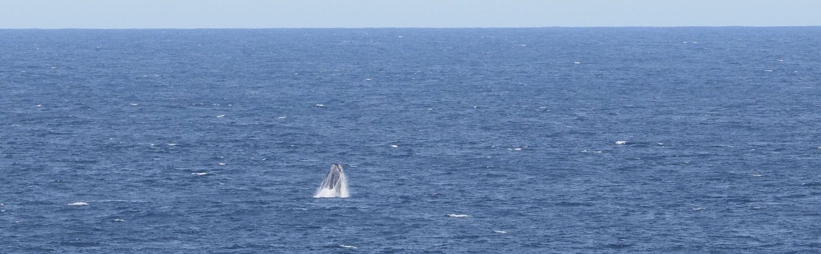 Neben dem Pooldeck springen immer wieder Wale hoch.