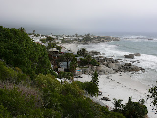 Nach einem Nickerchen gehts über die Hügel zum Chapmans Peak Drive. Wir sind froh, dass wir auf Reifen mit Profil bestanden haben, die Straße ist nass an der Küste im Afrikanischen Herbst.