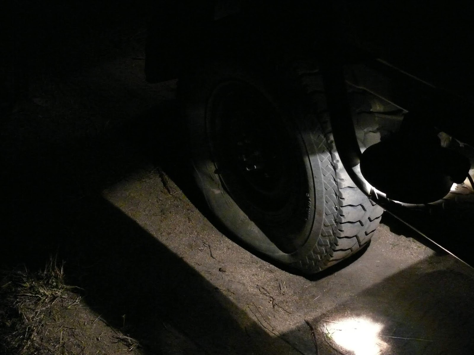 Das Schlimmste ist aber, dass unser Ranger den Reifen mit dem Fährtensucher zusammen wechseln muss und somit in der Dunkelheit keiner ein Auge oder auch gegebenenfalls den Gewehrlauf auf die Tiere gerichtet hat.