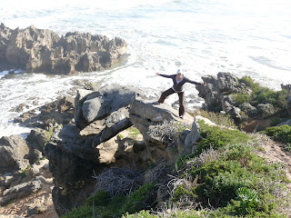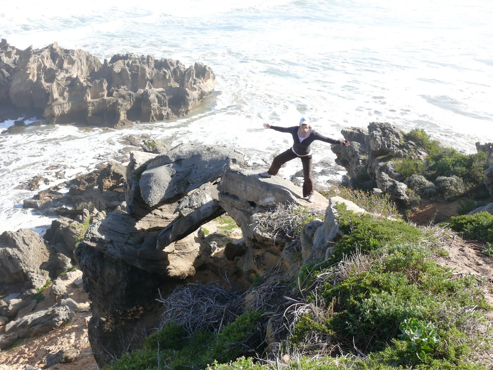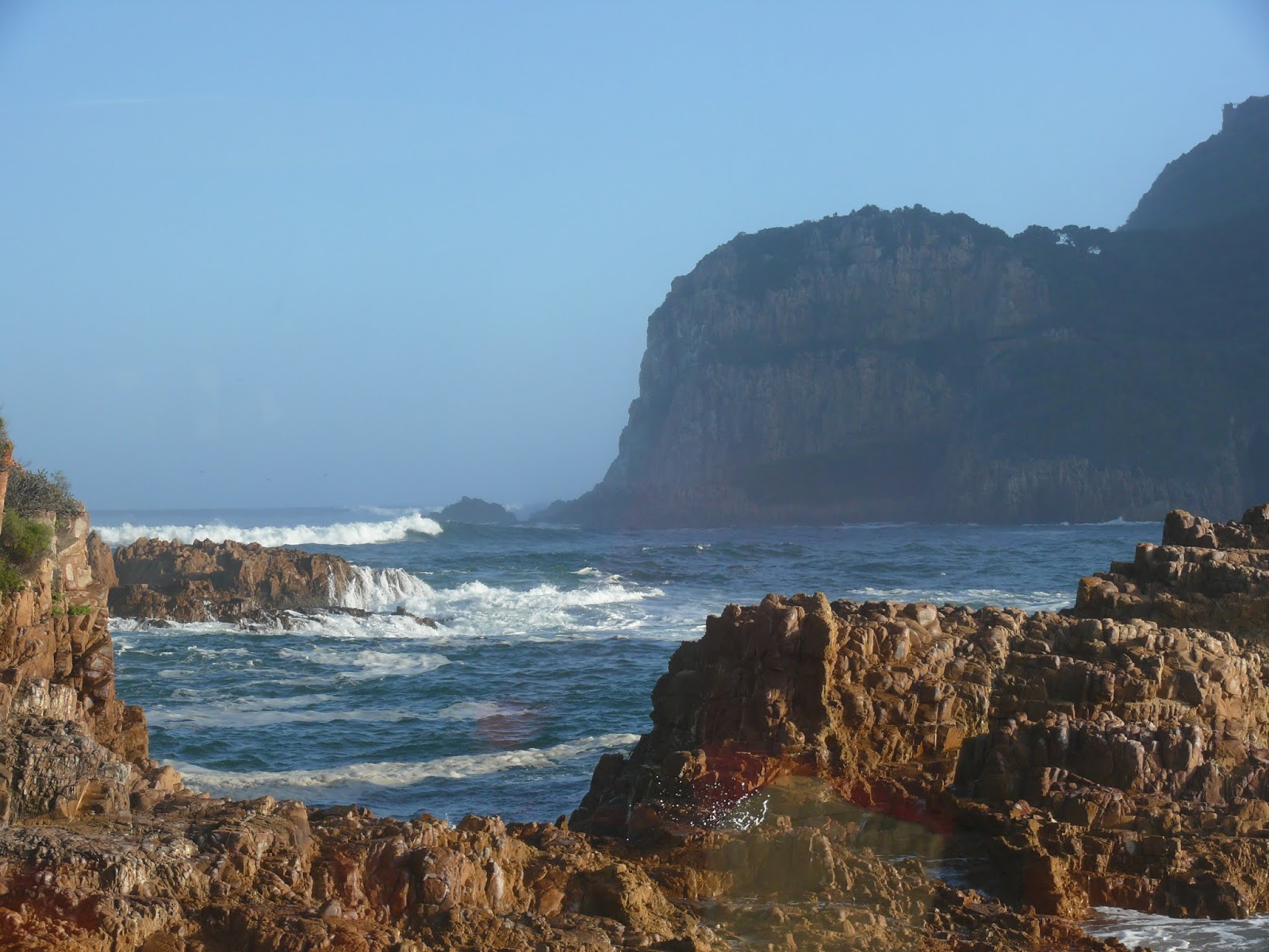 Noch nicht genug der aufschäumenden Gischt fahren wir auf die andere Seite von Knysna. Hier gibt es eine Meeresenge an deren Felsen das Meer hinauf peitscht.