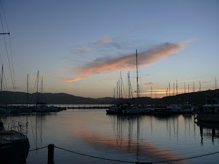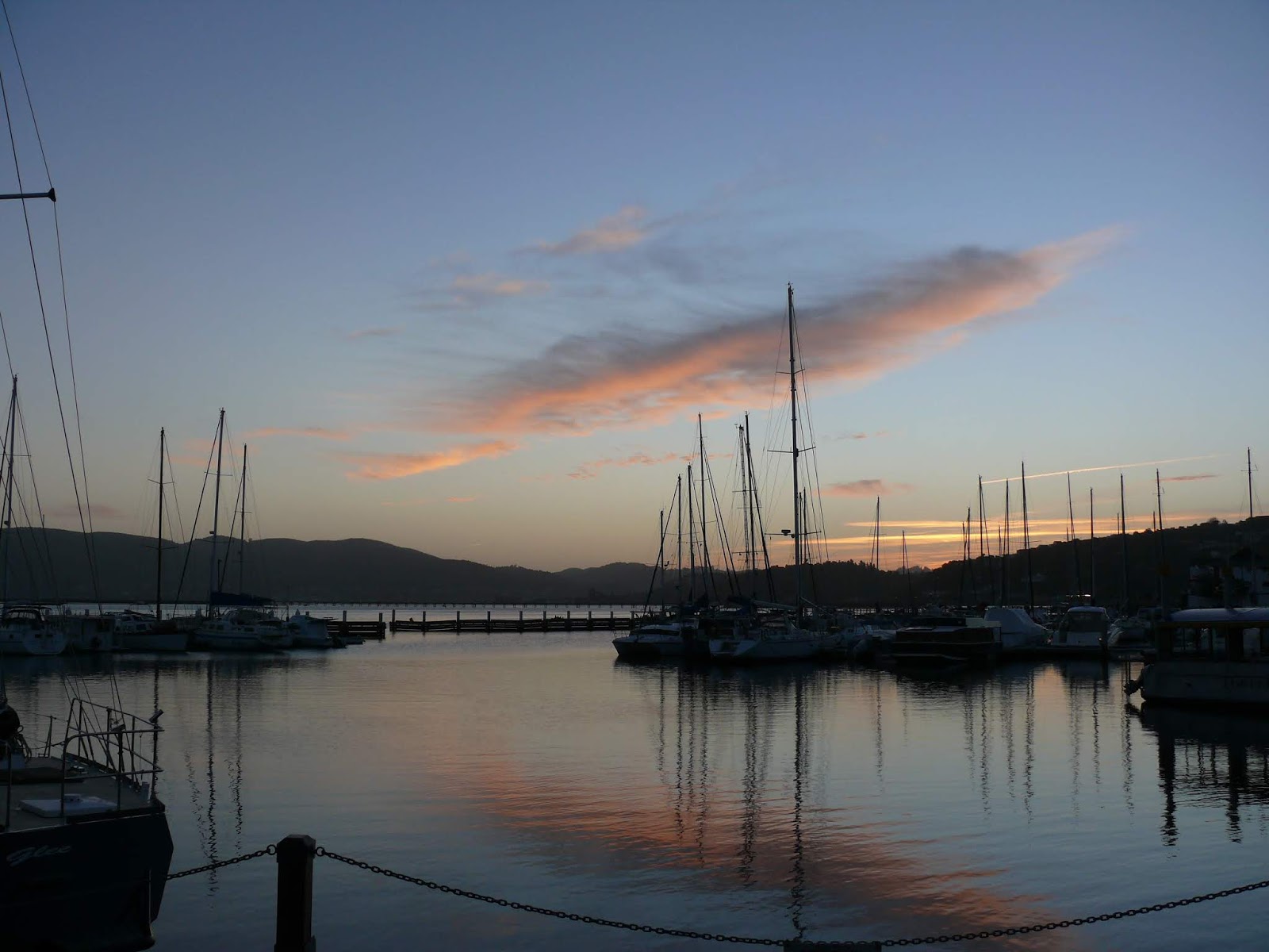 Sonnenuntergang im Hafen von Knysna mit vollem Bauch – hier gibt es unheimlich leckere, fangfrische Austern