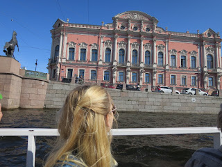 So schlendern wir Richtung Newsky Prospekt der Shopping Meile, aber nur um am Newa eines der vielen Boote zu nehmen, die entlang der Innen-Newa schippern und das bei 30 Grad. Unglaublich herrliches Wetter für St. Petersburg!