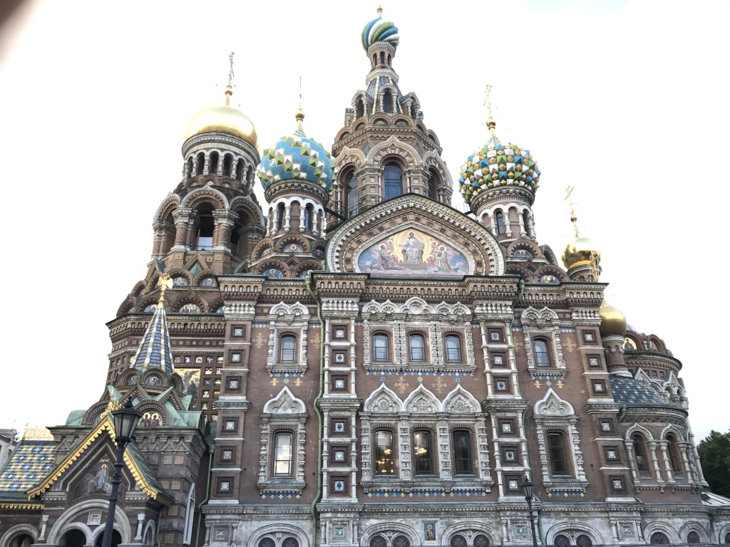 Bevor wir aber zur Stadtrundfahrt aufbrechen werden wir in der Nähe Blutskirche für eine Stunde zum Frühstücken abgesetzt. Wir gehen in ein typisches Restaurant das „Dining Room 1“ mit Selbstbedienung und ausschließlich russischem Publikum. Das große Angebot umfasst gute Hausmannskost, Snacks, Kuchen – der Preis ist unschlagbar niedrig.