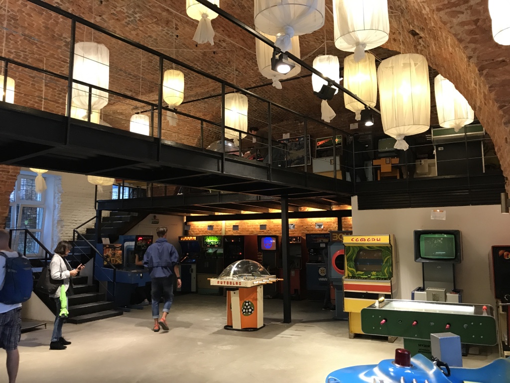 Gegenüber der Blutskirche auf der anderen Flussseite findet man versteckt im Innenhof das Sowiet-Spielautomaten-Museum. Ein Spaß für jung und alt, sogar der Kaffee kommt hier aus alten Automaten.