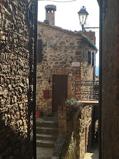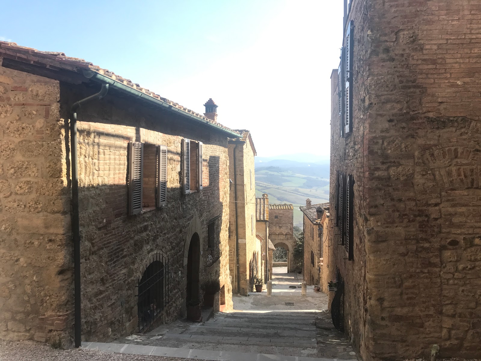 Im Anschluss besuchen wir Radicondoli und Mensano, ähnlich einsame Bergdörfer mit viel altem Charme und unglaublich schönem Ausblick. Ich gerate in Panik bei den engen Gassen, weil das Auto doch größer ist als der Fiat 500 der hiesigen Polizei.