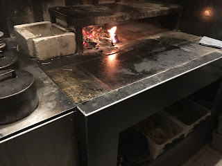Nach dem 2. von 6 Gängen werden wir an die Bar, bzw. Anrichtertresen, direkt an der offenen Feuerstelle eingeladen. Den restlichen Abend dürfen wir dort verbringen.