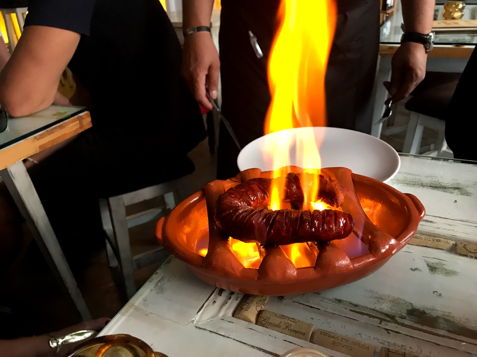 Am Abend gibts Tapas zum Abwinken mit leckerem Rotwein – die Chorizo grillen sie uns am Tisch auf offener Flamme. Eine Show! Besonders für Teenager!