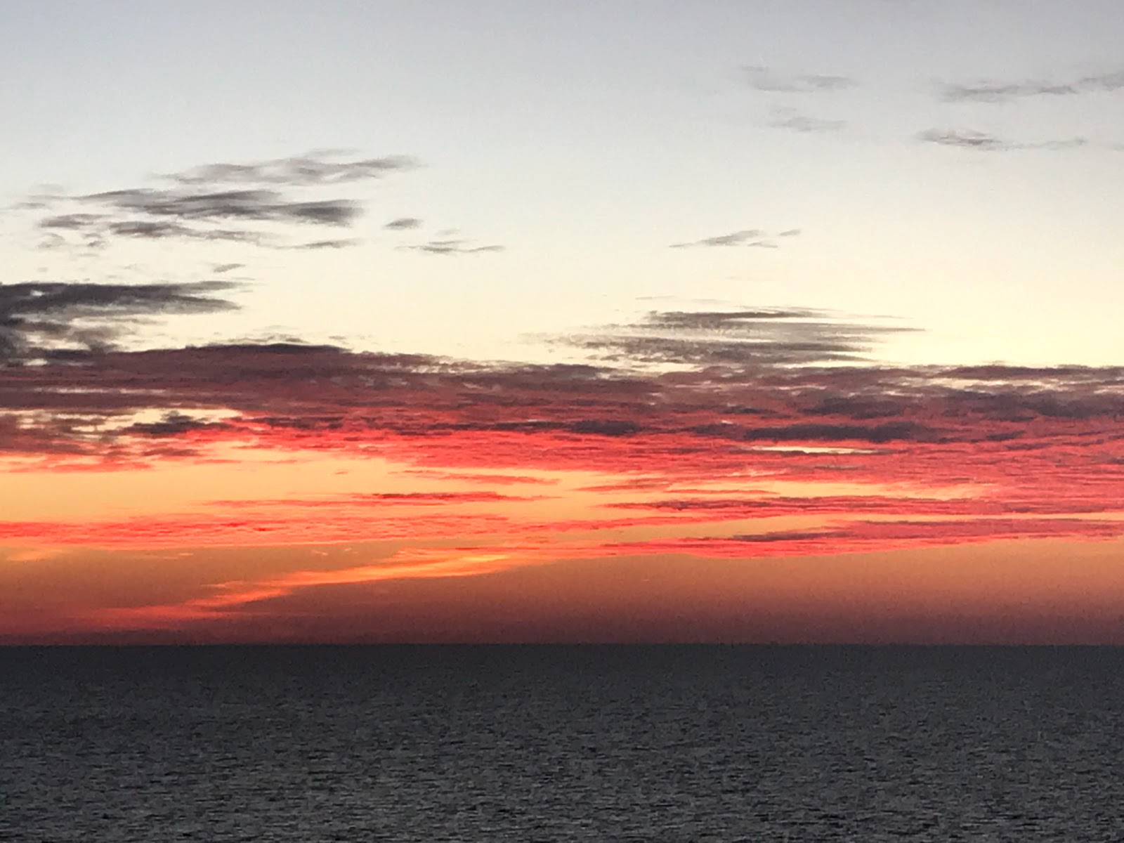 Unser 2. Seetag, endlich! Nach vier Tagen voll Programm schlafen wir aus. An Deck sind bereits um 10 Uhr 27 Grad.